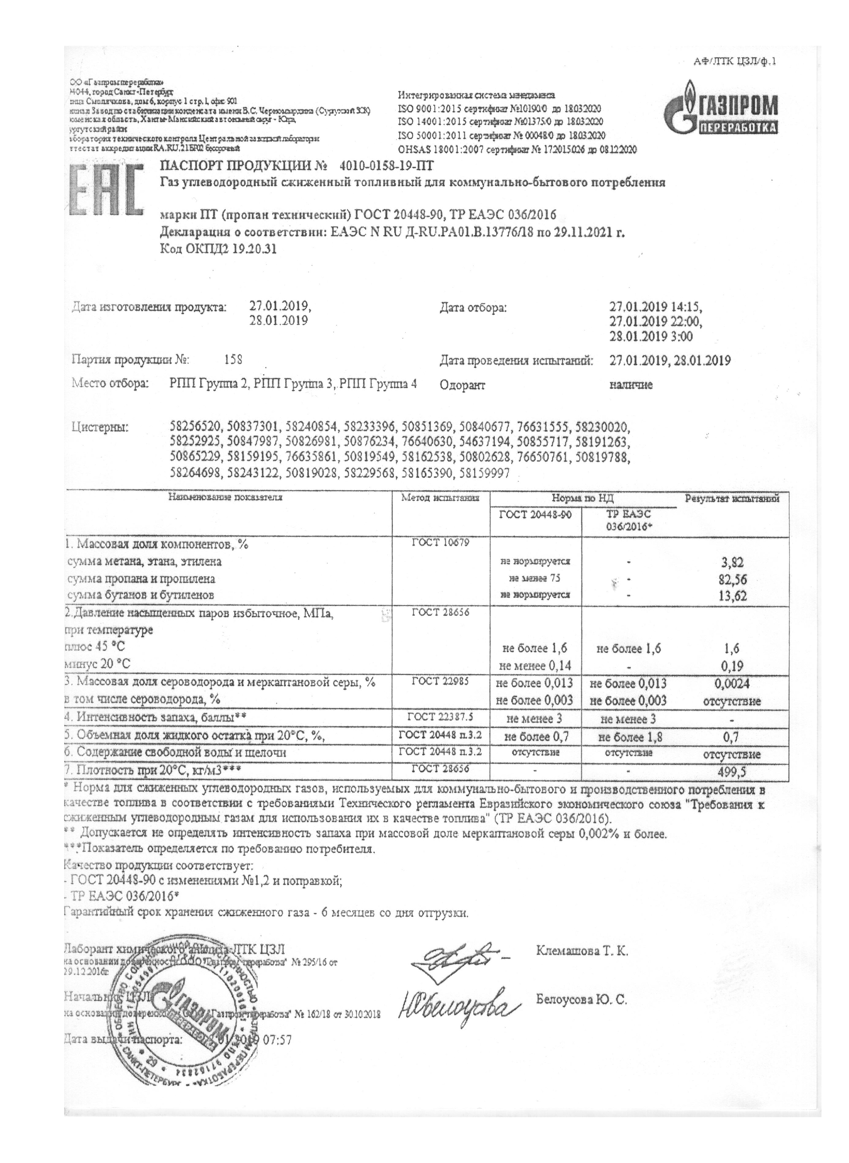 Качество поставляемых нефтепродуктов подтверждается паспортами качества от заводов-производителей: Газпром, Киришинефтеоргсинтез, Лукойл.